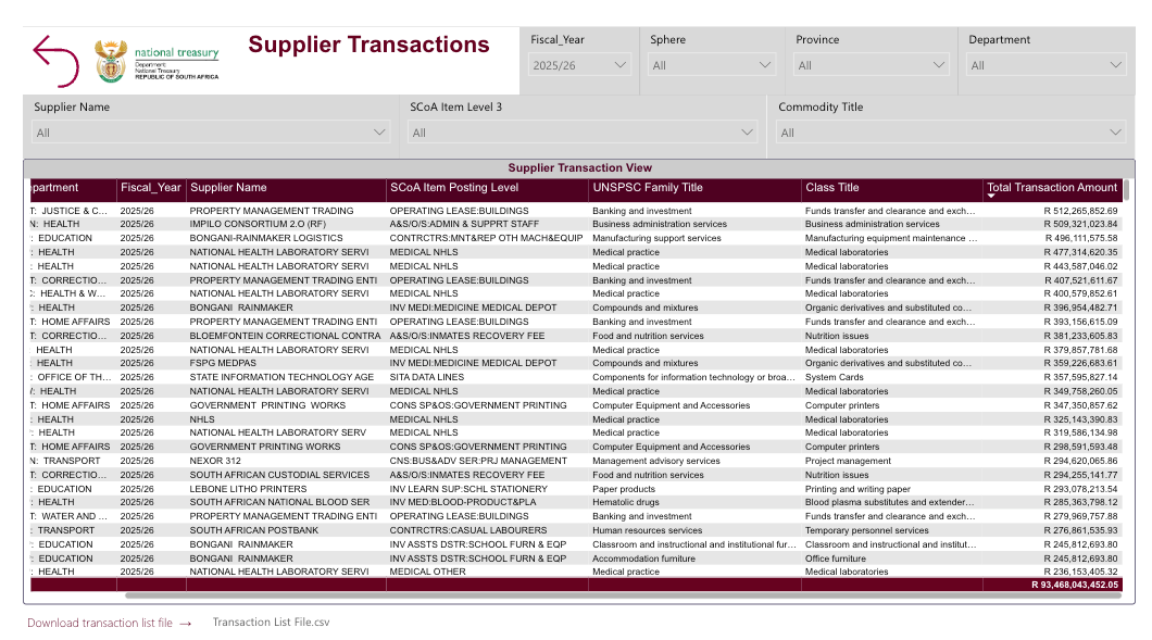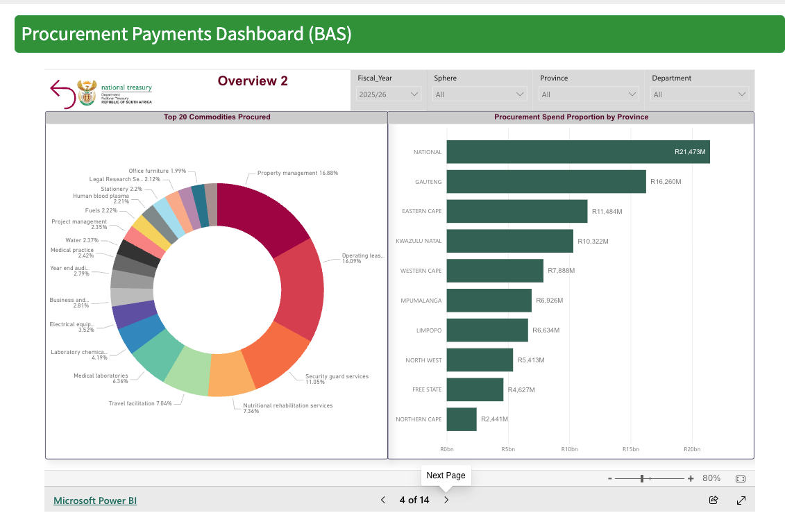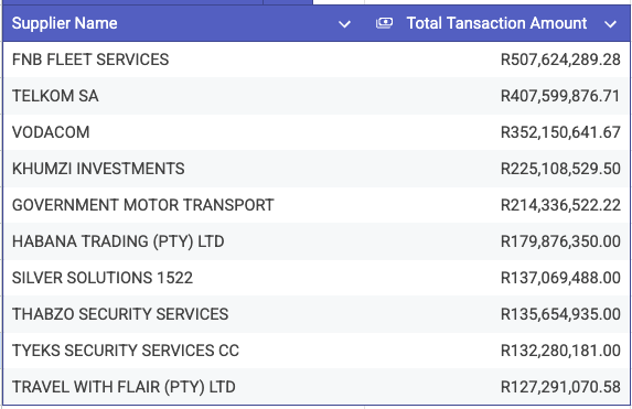 So, you know, kudos to them for doing it. What we have been given access to is a essentially a data dashboard, which anyone can see. Amazing. The dashboard, drawn from the Basic Accounting System (BAS) on government tenders, is available here. And something called the Central Suppliers Database (CSD), a kind of analysis system, here.