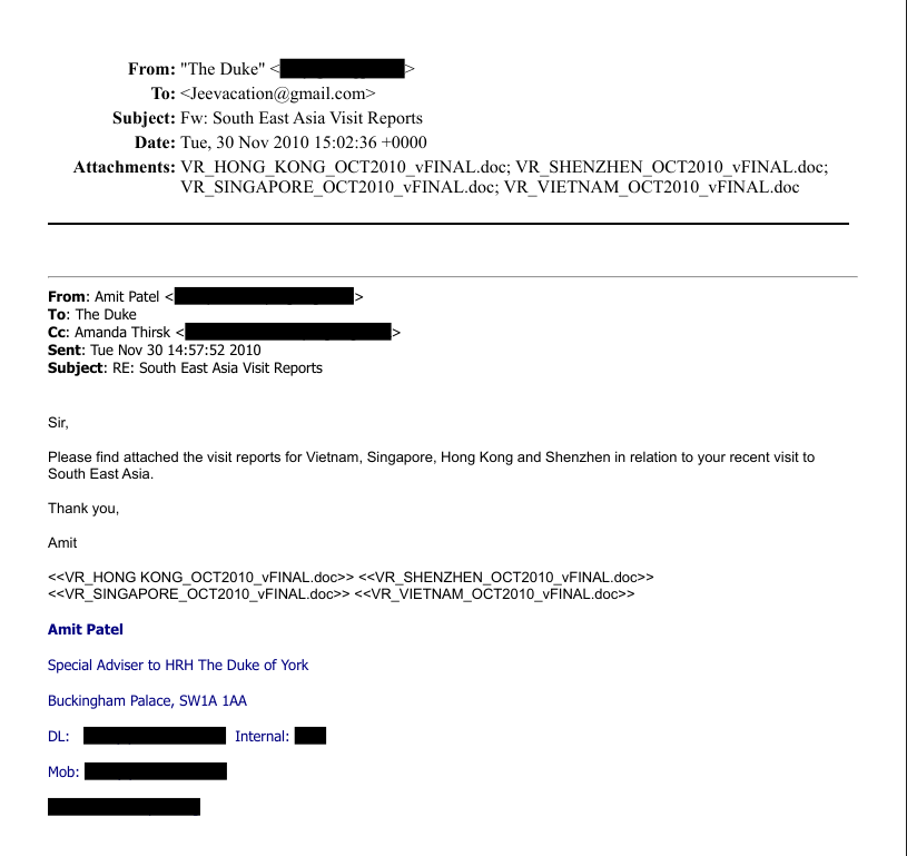The email was forwarded to Epstein less than five minutes after the then-Prince received it from his private secretary at the time, Amit Patel. What it suggests is that Mountbatten-Windsor leaked trade envoy reports, coming out in the context of other leaks involving the recently sacked British Ambassador to the US, Lord Mandelson, who allegedly passed market-sensitive information while a minister.